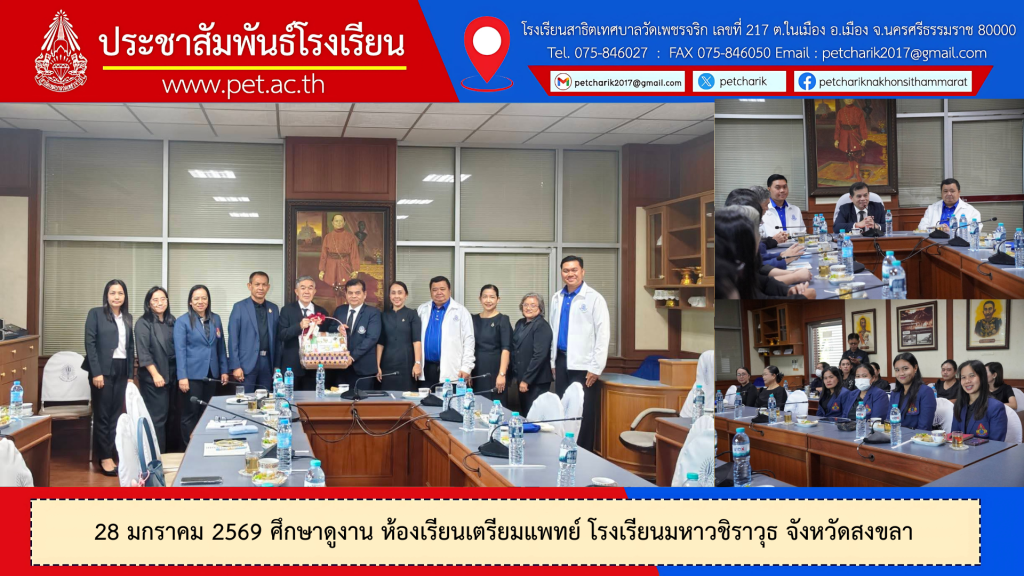 28 มกราคม 2569 ศึกษาดูงาน ห้องเรียนเตรียมแพทย์ โรงเรียนมหาวชิราวุธ จังหวัดสงขลา