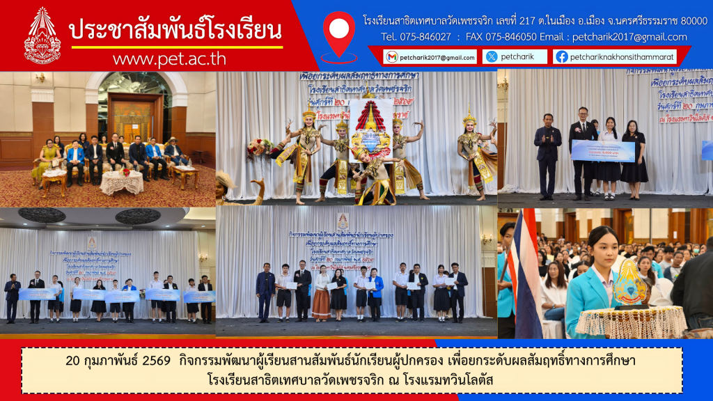 กิจกรรมพัฒนาผู้เรียนสานสัมพันธ์นักเรียนผู้ปกครอง เพื่อยกระดับผลสัมฤทธิ์ทางการศึกษา โรงเรียนสาธิตเทศบาลวัดเพชรจริก 20 กุมภาพันธ์ 2569