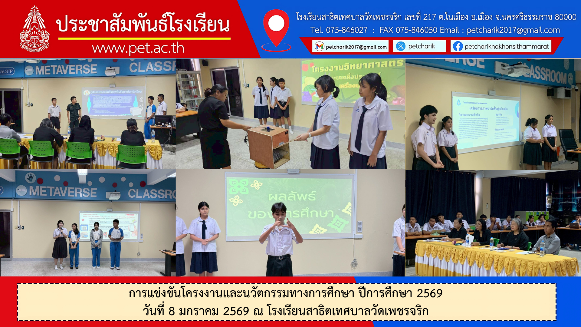 การแข่งขันโครงงานและนวัตกรรมทางการศึกษา ปีการศึกษา 2569 วันที่ 8 มกราคม 2569 ณ โรงเรียนสาธิตเทศบาลวัดเพชรจริก ข่าวสารเดือนมกราคม69 การแข่งขันโครงงานและนวัตกรรมทางการศึกษา ปีการศึกษา 2569 วันที่ 8 มกราคม 2569 ณ โรงเรียนสาธิตเทศบาลวัดเพชรจริก รูปภาพกิจกรรมเพิ่มเติม : https://photos.app.goo.gl/EfXRPEeQcqAexSQS8