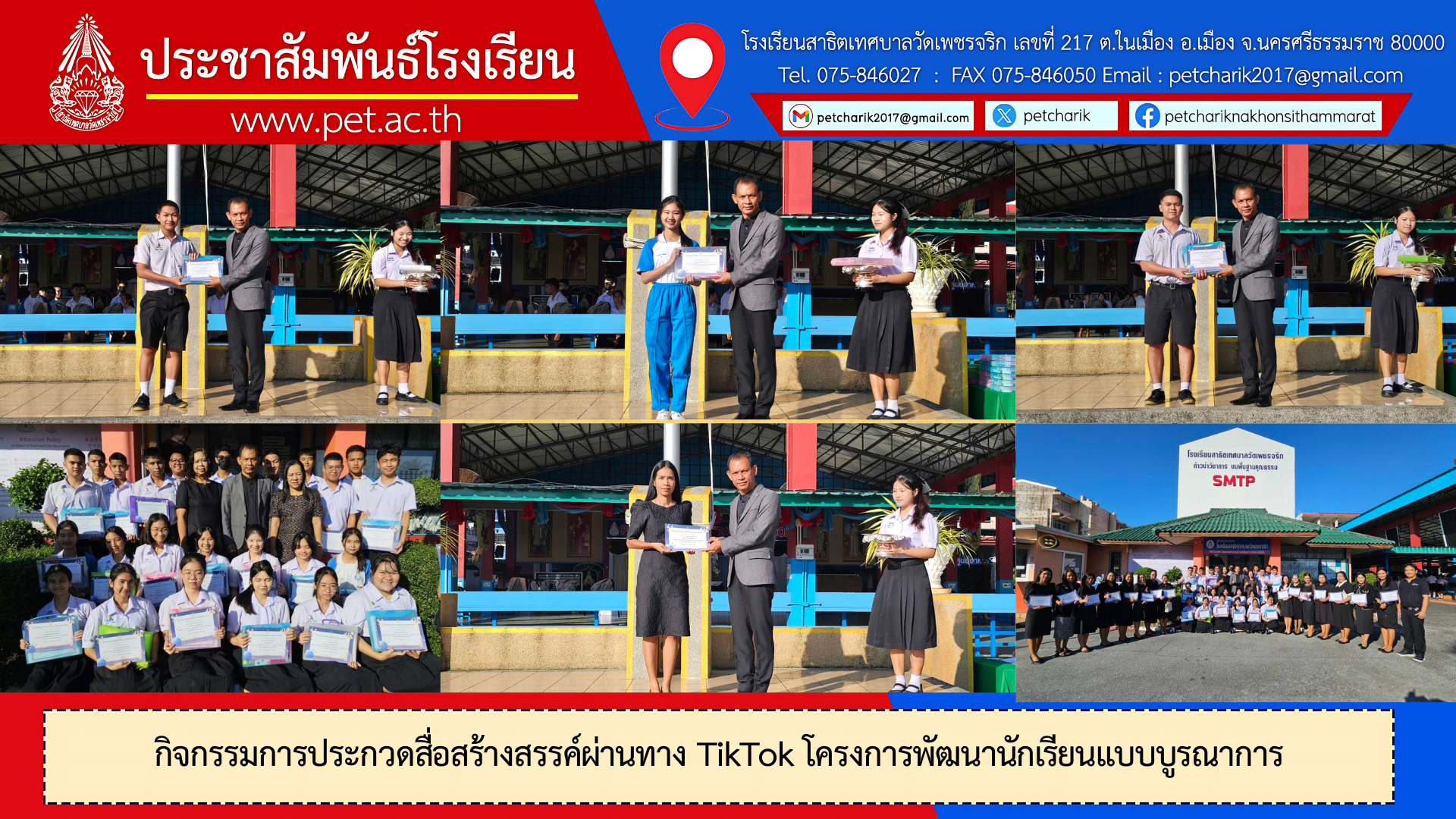 กิจกรรมการประกวดสื่อสร้างสรรค์ผ่านทาง TikTok โครงการพัฒนานักเรียนแบบบูรณาการ ข่าวสารเดือนธันวาคม68 3 ธันวาคม 2568 กิจกรรมการประกวดสื่อสร้างสรรค์ผ่านทาง TikTok โครงการพัฒนานักเรียนแบบบูรณาการ รูปเพิ่มเติม : https://photos.app.goo.gl/DqjQiiXC33jBa63c6