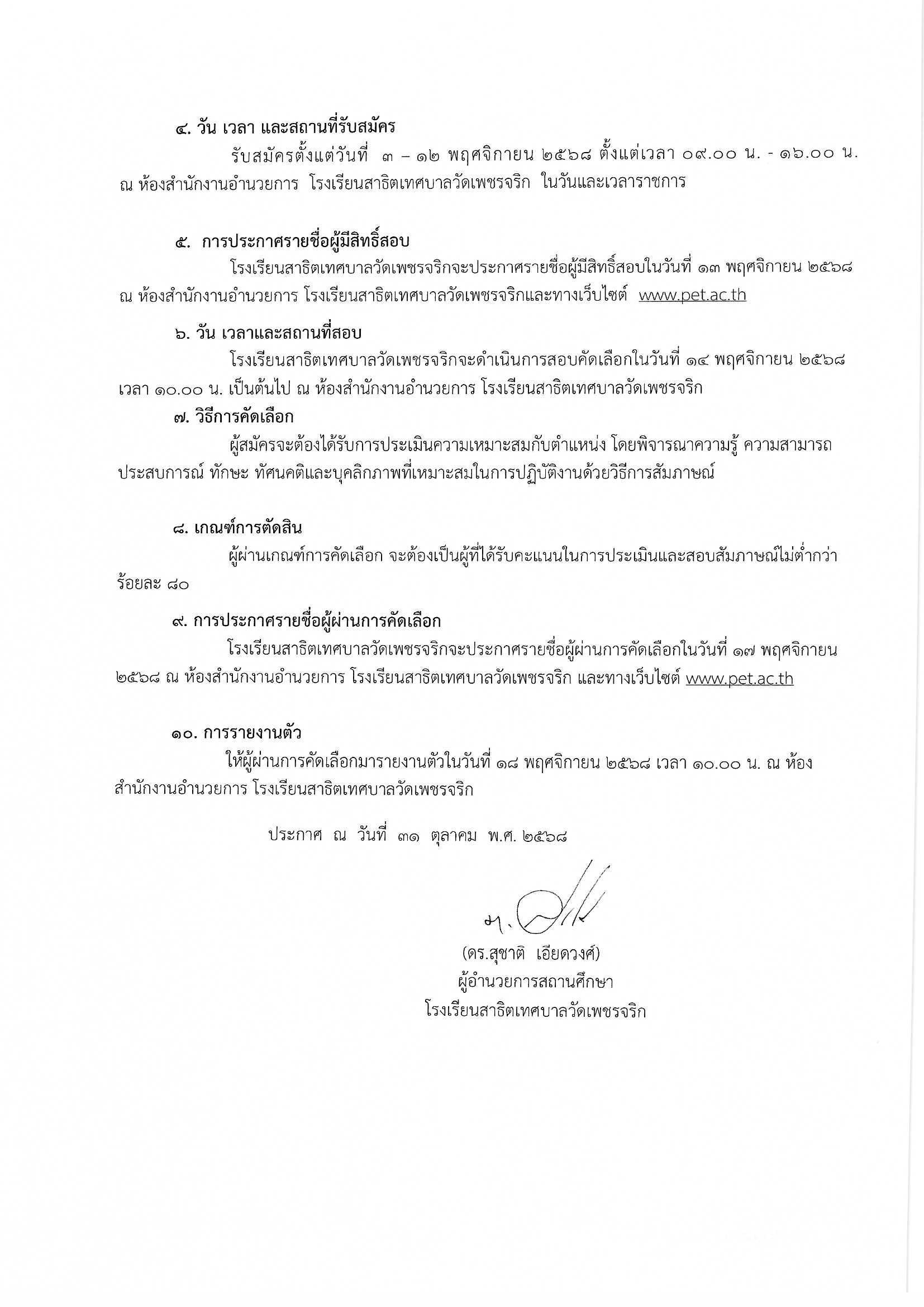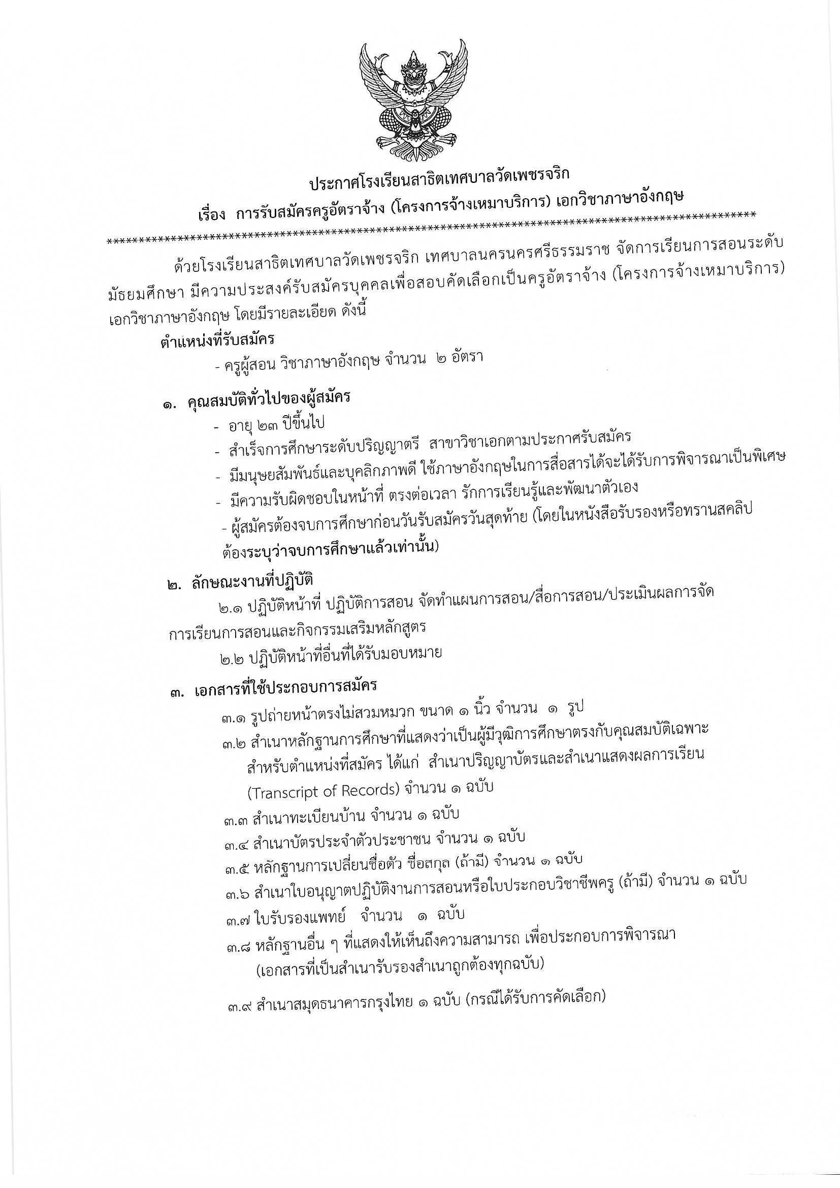 ประกาศรับสมัครจ้างเหมาบริการวิชาภาษาอังกฤษ จำนวน 2 อัตรา รับสมัครตั้งแต่วันที่ 3 – 12 พฤศจิกายน 2568