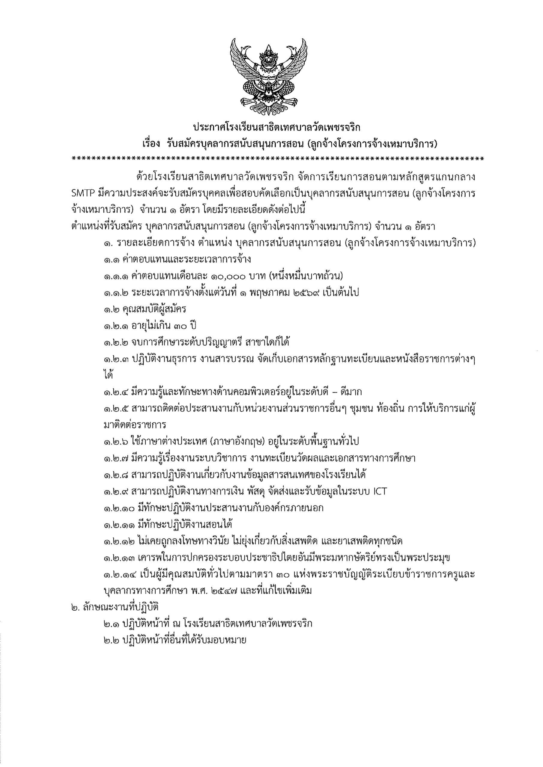 ประกาศรับสมัครบุคลากรสนับสนุนการสอน (ลูกจ้างโครงการจ้างเหมาบริการ) ตั้งแต่วันที่ 16 – 22 เมษายน 2569 ข่าวรับสมัครงาน