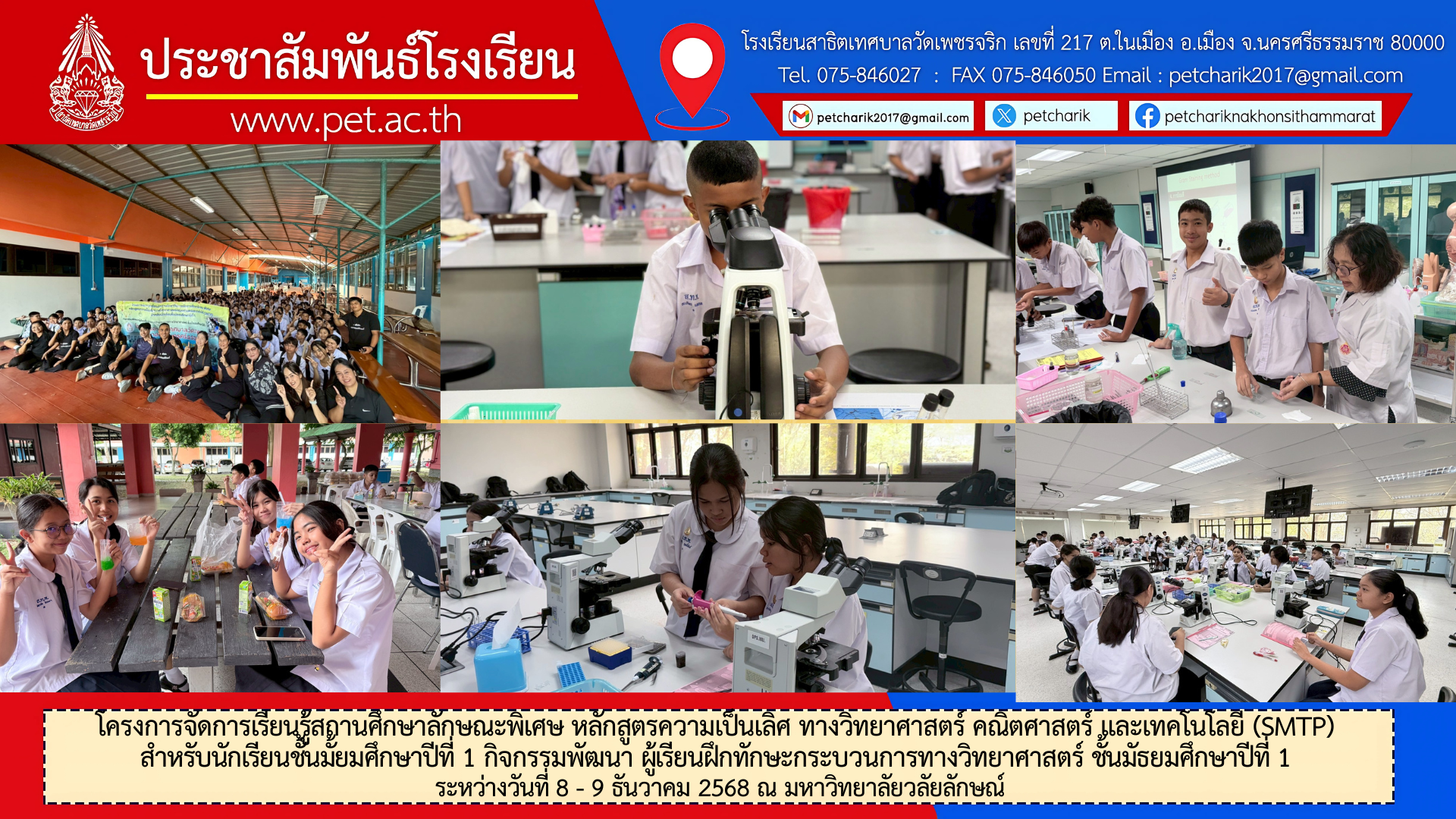 ชั้นมัธยมศึกษาปีที่ 1 ระหว่างวันที่ 8 – 9 ธันวาคม 2568 ณ มหาวิทยาลัยวลัยลักษณ์