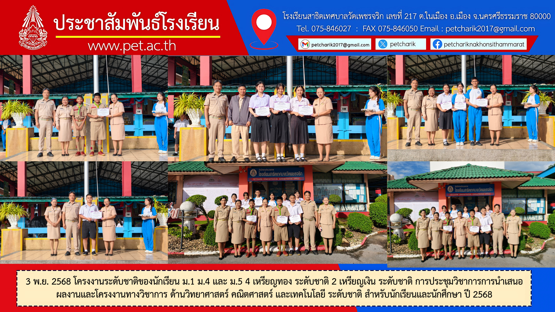 โครงงานระดับชาติของนักเรียน ม.1 ม.4 และ ม.5 4 เหรียญทอง ระดับชาติ 2 เหรียญเงิน ระดับชาติ