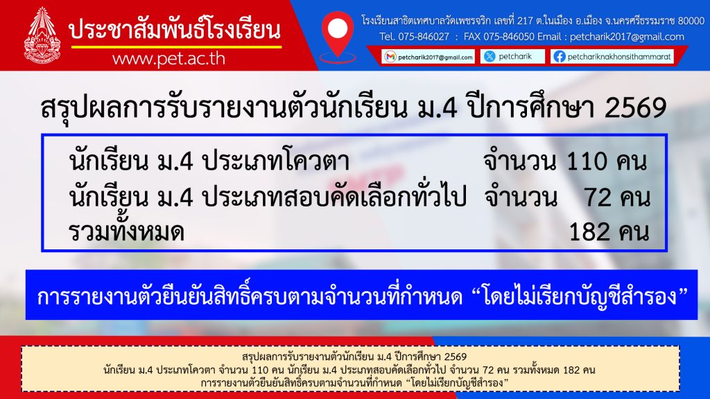 22ก.พ.69 สรุปผลการรับรายงานตัวนักเรียน ม.4 ปีการศึกษา 2 […]