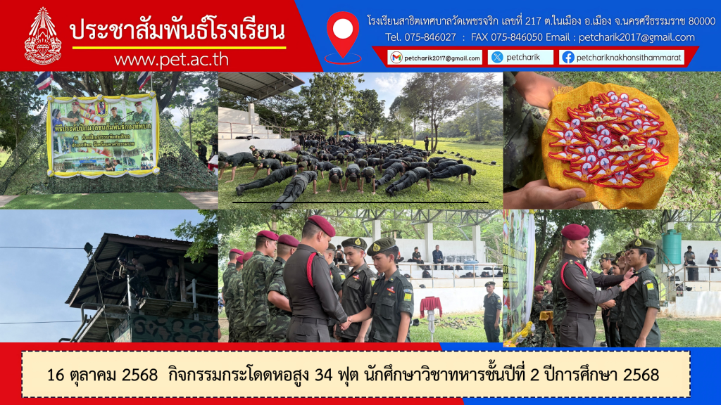 16 ตุลาคม 2568 กิจกรรมกระโดดหอสูง 34 ฟุต นักศึกษาวิชาทห […]